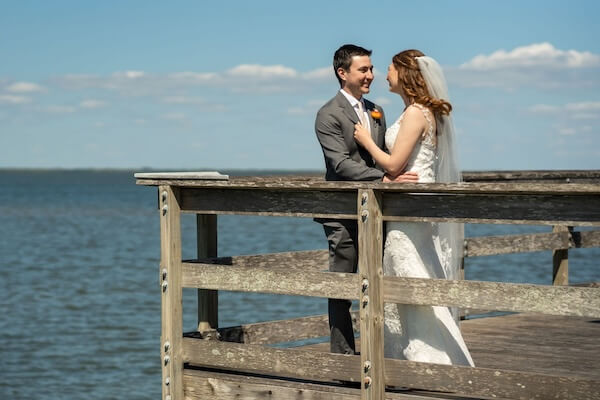The newlyweds headed off for some awesome waterfront photos while family and friends made their way to cocktail hour.