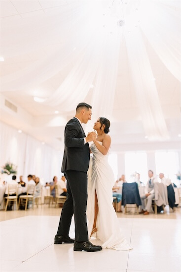 Returning, the couple finished dinner, cut their wedding cake, and headed to the dancefloor to dance the night away with family and friends.