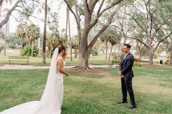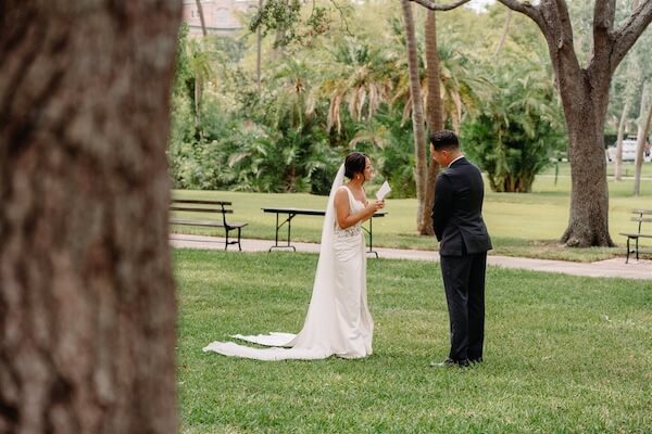 Over at the Tampa Garden Club, everything was in place for the couple’s wedding ceremony. Soft violin music set the stage for the beautiful Tampa wedding to come.