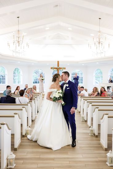 Sealing their vows with a kiss, the newlyweds made their way up the aisle. Returning for a family photo session on the altar.