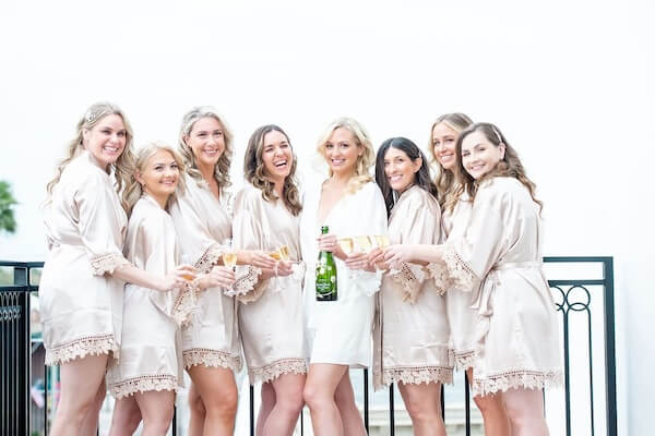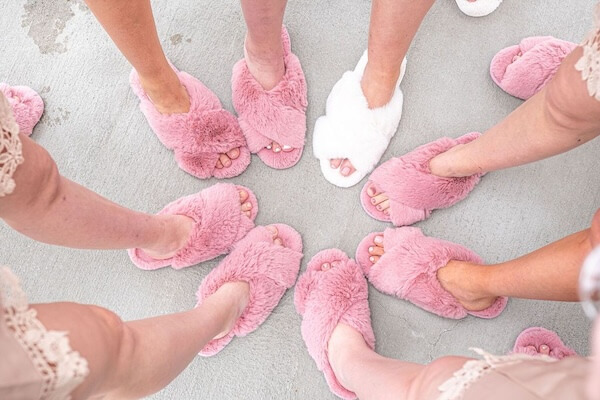 Our bride and the ladies started their day with bubbly, fuzzy slippers and lots of fun as they had hair and makeup services and got dressed.
