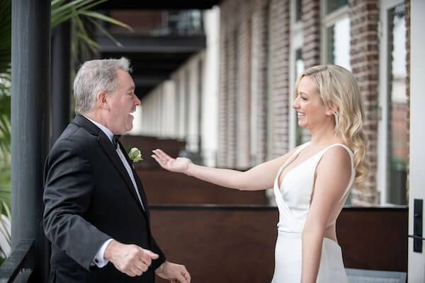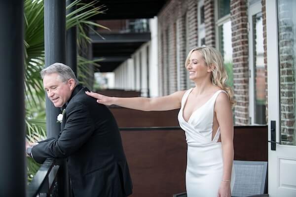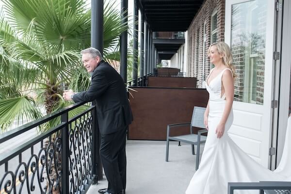 After some photos with her wedding party, Rebecca headed to her Dad’s room, where he was waiting on the balcony for arrival. They had an incredible first look and spent a little private time together.