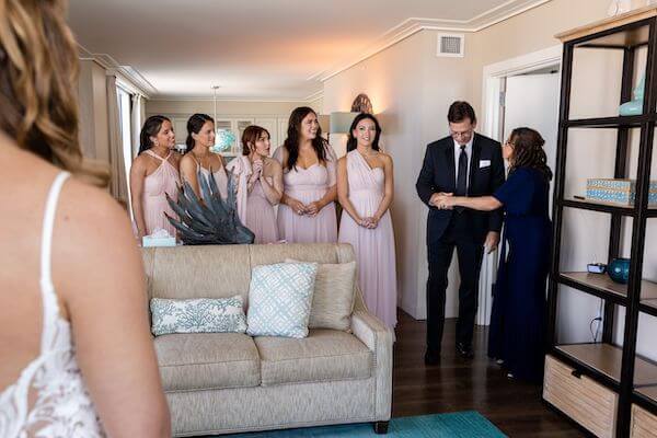 Meanwhile, Jake and his wedding party (his sister was his woman of honor!) spent some time together. After a few nibbles and a toast, they headed to the resort’s event lawn for the wedding ceremony.