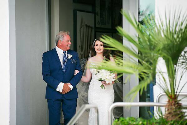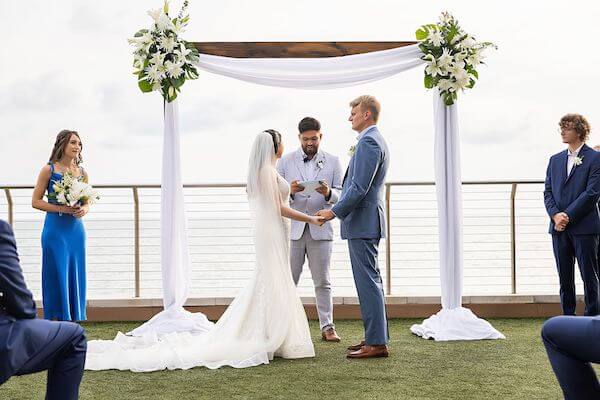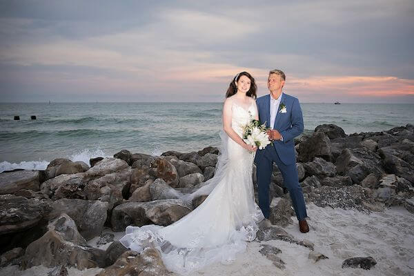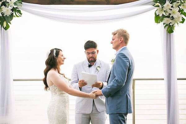 With their Best Man and Maid of Honor by their side, the couple exchanged wedding vows and rings with the Gulf of Mexico behind them.