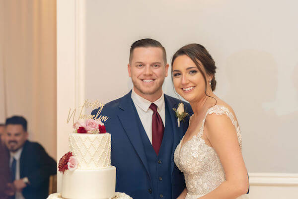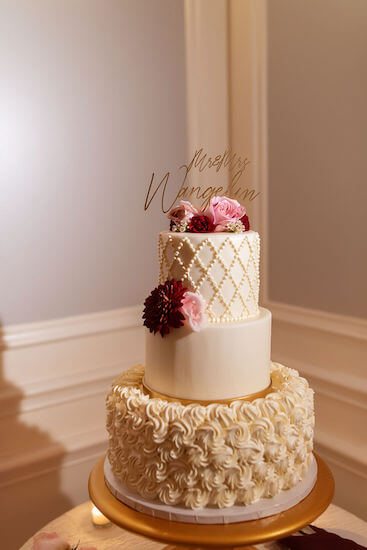 While dancing the night away, the couple took a few minutes to cut their beautiful three-tiered wedding cake.