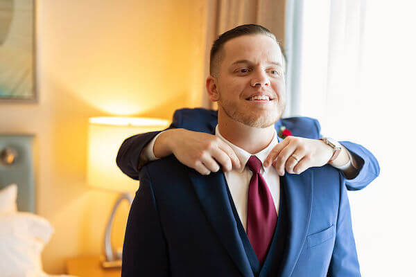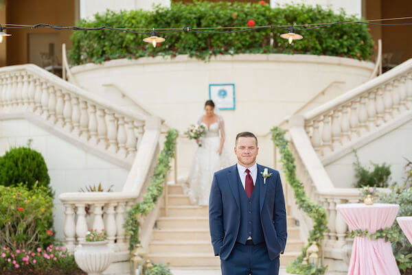Outside of the hotel, Brandon waited patiently for his bride’s arrival. The two of them were so incredibly cute!