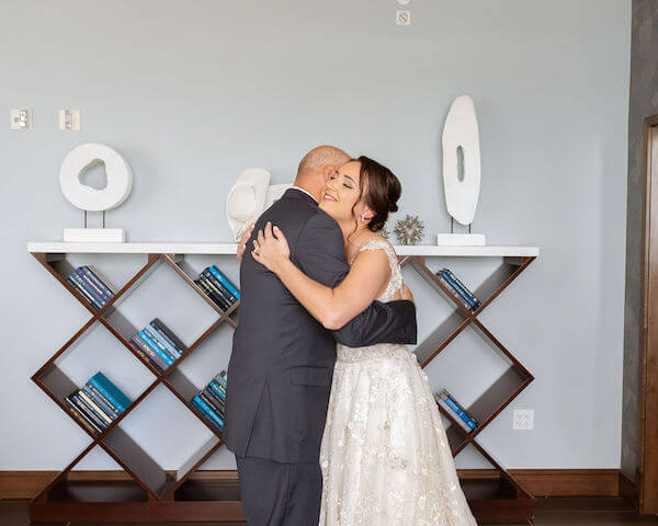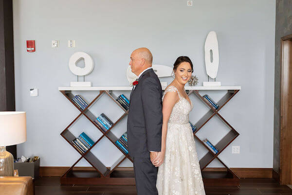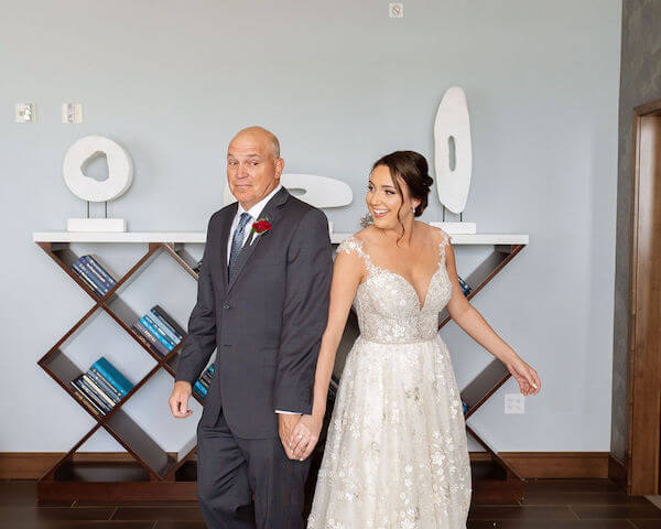 It’s no secret that our Special Moments Event Planning team LOVES a good first look. Lucky for us, Rebecca and Brandon’s wedding had several of them. Complete with some adorable details. The first look for Rebecca was with her father.