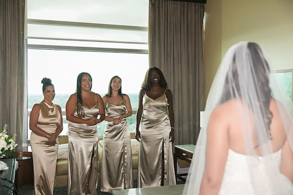 The day began early for the ladies with on-site hair and makeup services. The photography team was there to document wedding details, getting ready, and the bridal parties’ first look at the bride!