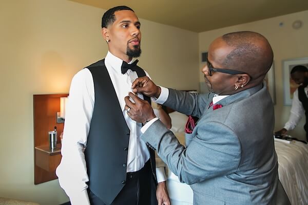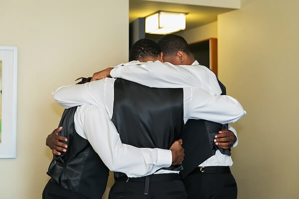 Across the hotel, the groom and groomsmen exchanged gifts, bonding, and getting dressed and ready!