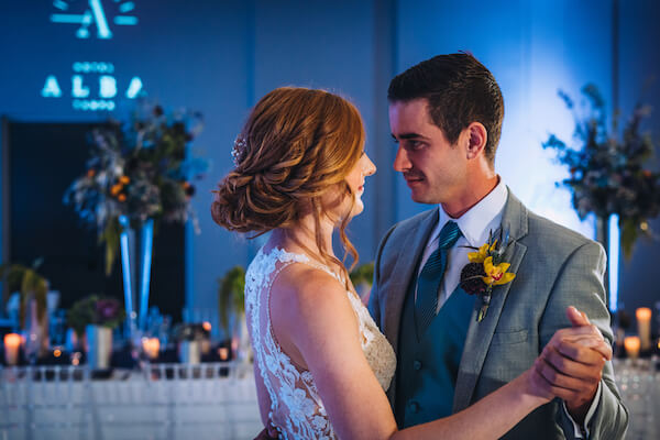 By incorporating soft lighting and draping, we were able to really showcase that the reception space can look a whole lot different than your typical hotel ballroom,” Special Moments Events owner Tammy Watermen explained. “We really wanted to display the potential that the hotel has to offer for weddings, and not follow the most recent trends. By mixing colors and concepts that people would not normally choose for their wedding, we were able to bring the unique style that Hotel Alba offers to life.