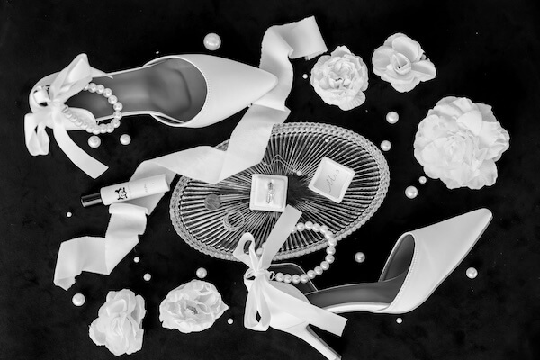 Inside the historic inn, Cristina and Christoper spent the morning getting ready. The morning was spent getting dressed and shooting each of their wedding accessories.