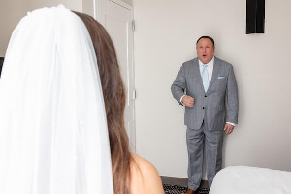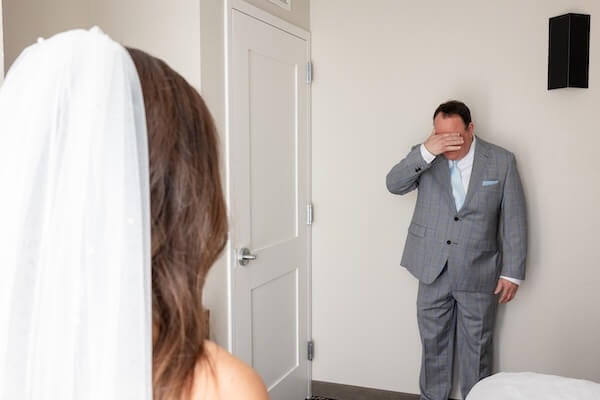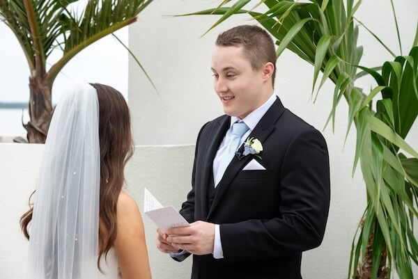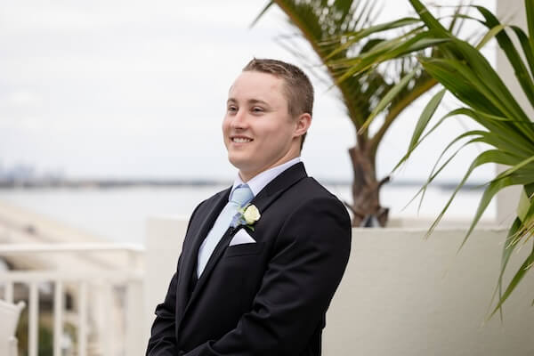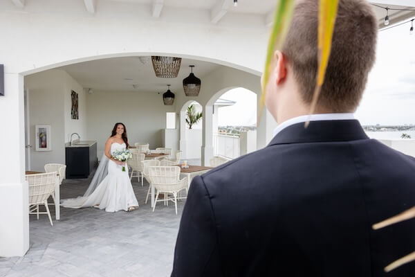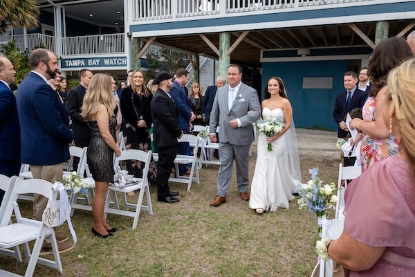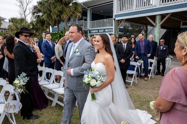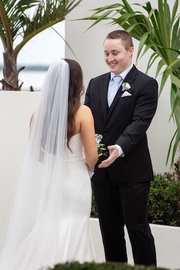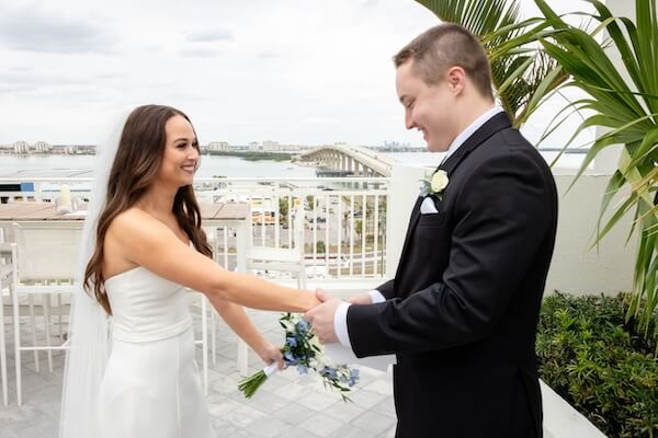 With Cole tucked away on the hotel’s balcony, Daria rounded the corner for their first look. It was too cute for words as they both fought back tears. They took advantage of the private moment to share some personal vows before heading to Tampa Bay Watch.