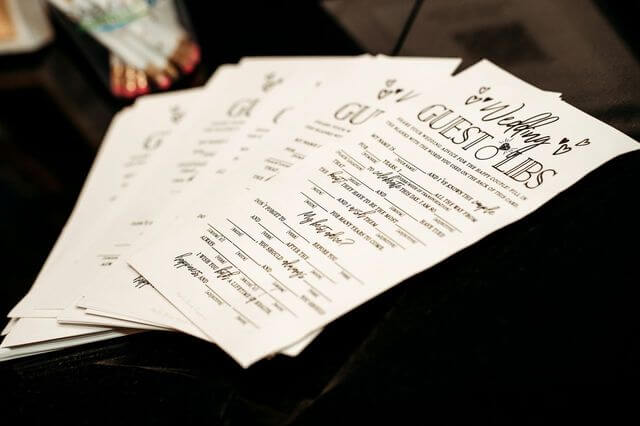 Side tables held an assortment of fun board games, and guests could create their wedding edition of Mad Libs or answer crossword puzzle questions about the couple.