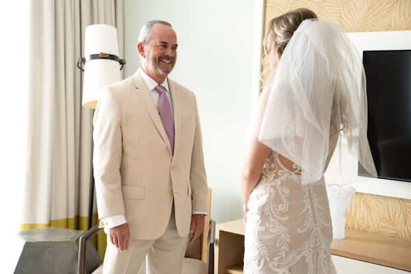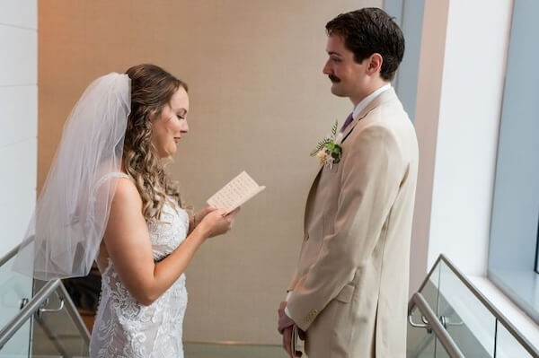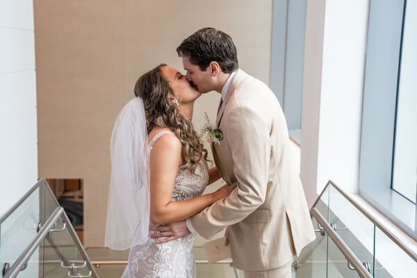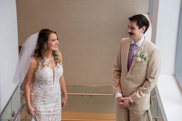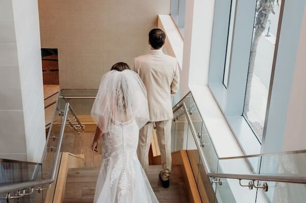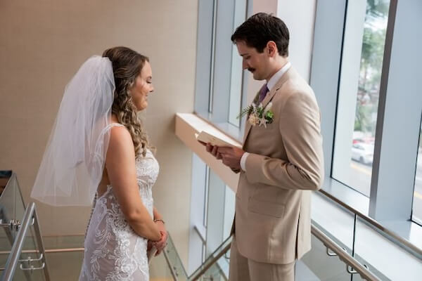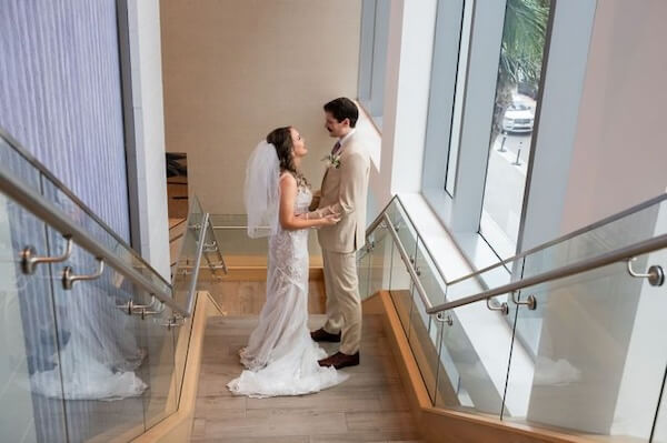 Finally, it was time for Emily and Austin’s First Look. The resort’s staircase created a secluded setting for the couple to spend time together and exchange vows privately.