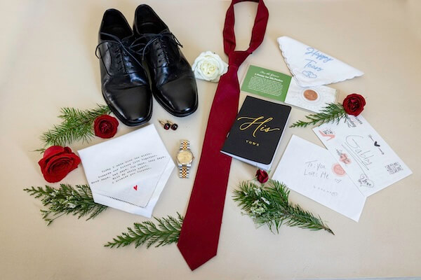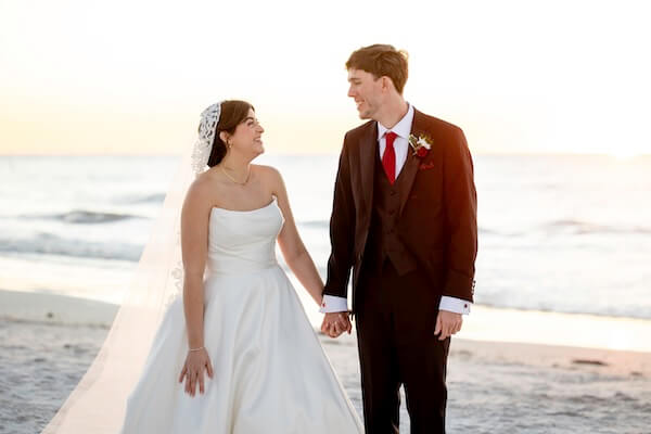 Gabby and John’s Clearwater wedding was a unique blend of Gatsby-era elegance and a holiday color story, with striking pops of greenery. And that’s just the beginning.