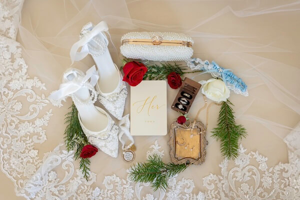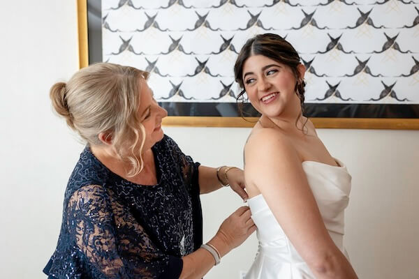 For Gabby and her wedding party, the services included hair and makeup, some fun photos, and wedding details, as well as Gabby’s mom helping her with her dress.
