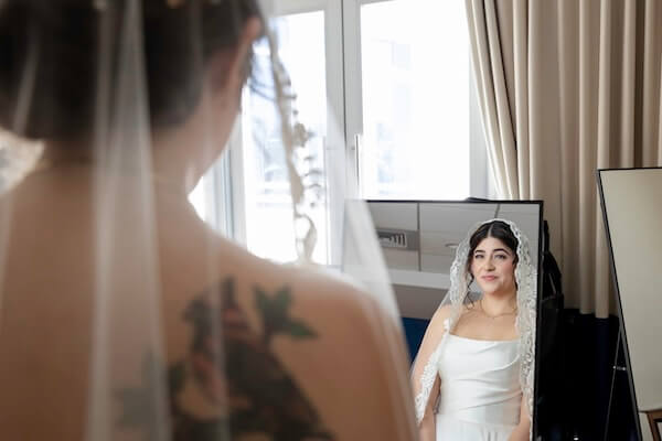 Back in Gabby’s suite, with her dressed and ready, it was time for her wedding party to see her.