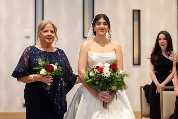 With everyone in their places, John looked on as Gabby, escorted by her mother, made her entrance to “Experience” by Ludovico Einaudi, Daniel Hope, and I Virtuosi Italiano.