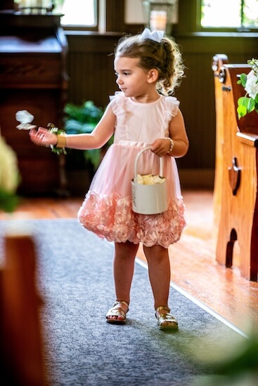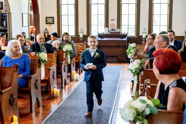 With nearly everyone in place, it was almost time for the bride’s entrance. But first, it was time for their ring bearer and flower girl to make their way down the aisle.