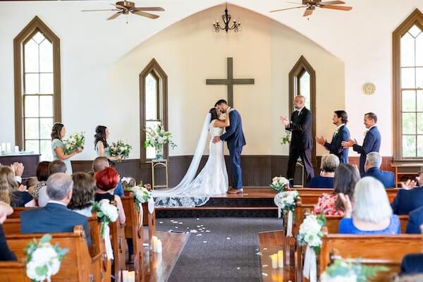 The historic chapel they chose for their wedding ceremony is intimate, has an incredible dark wood interior, and envelopes you like a warm hug.
