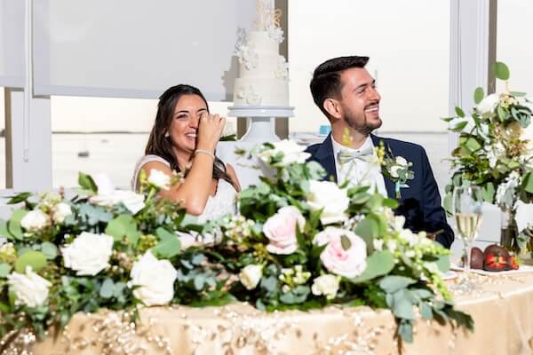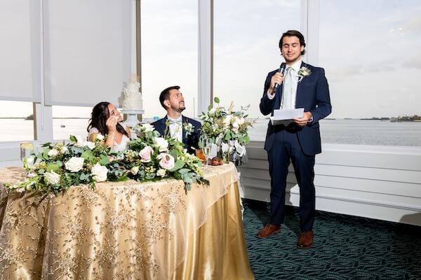 Following a welcome by the bride’s father, there were several touching toasts. Great wedding toasts evoke emotion. And in this case, the newlyweds laughed until they cried!