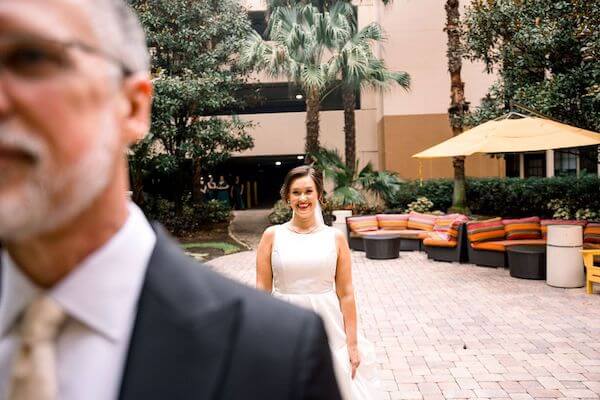 It was time for the bride and groom-to-be to see each other for the first time. Jennifer snuck up behind Daniel, and his reaction was precious.