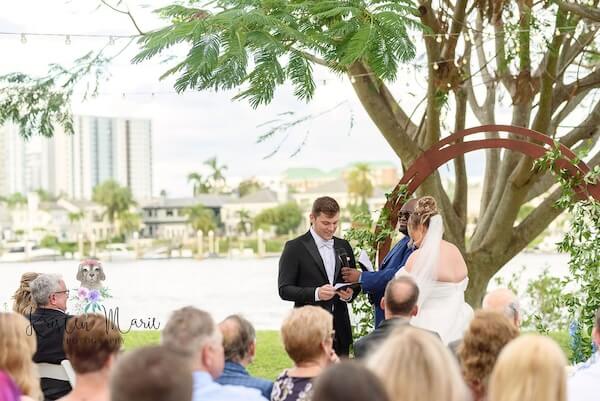 This beautiful wedding spanned two sides of Tampa Bay. Hotel accommodations were across the bay from their Davis Islands wedding venue, and water taxis shuttled guests across the water.