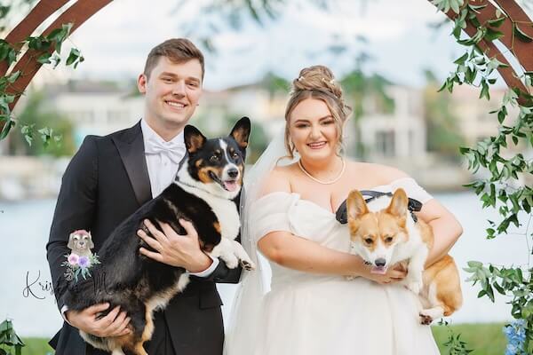 With wedding guests in place, it was time for the wedding party and guests of honor. We’re in love with the couple’s puppies making their grand entrance.