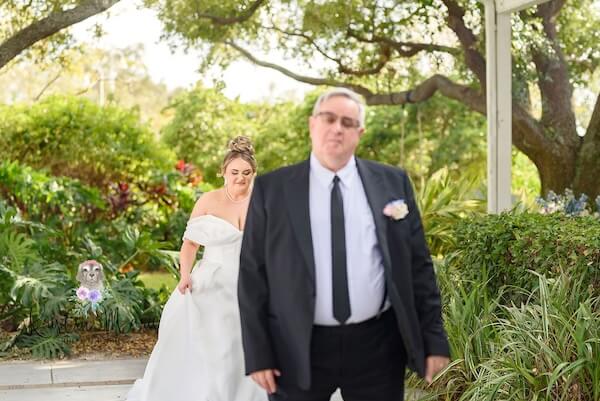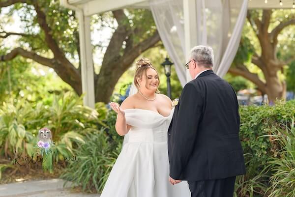 Julie’s first order of business was taking first-look photos with her father. We love their closeness—it’s very touching.