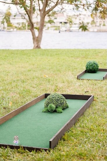 As wedding guests were transported to the Davis Islands venue, they were treated to a bit of fun before the ceremony began. A Mini Putt Putt golf course and some light refreshments; what’s better than an Arnold Palmer?
