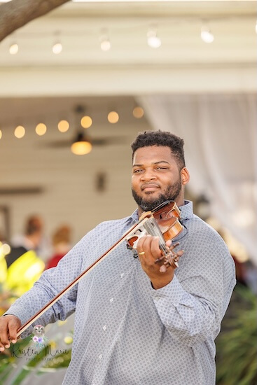 As they arrived, wedding guests were treated to incredible violin music. Additionally, each guest was offered a hand fan and one of the really adorable wedding programs.