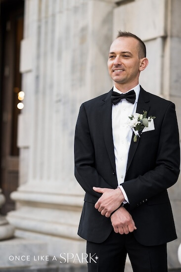 Corie and Nick had their first look on the steps of their wedding venue. One of Tampa’s significant historic buildings, it offers excellent textures and backdrops.
