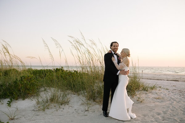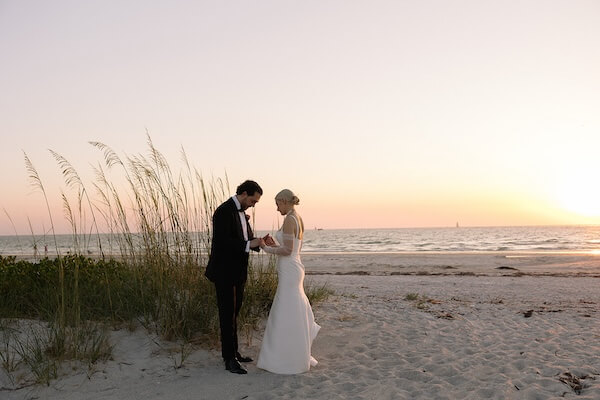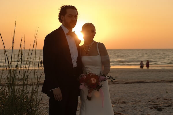 During the Salad course, Kali and Zach enjoyed the magnificent sunset for some incredible Sand Key wedding portraits.