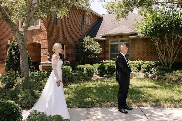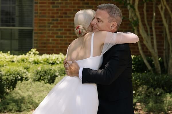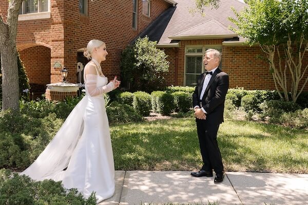 Following hair and makeup at her family home, it was time for a little one-on-one time with her father. We love father-daughter first looks!