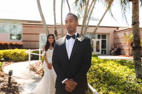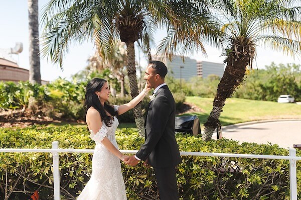 Outside the hotel, with Nabil in place, Kathy headed down the sidewalk to her anxiously waiting groom. As you know, we love a great first look, and this one was adorable.