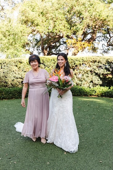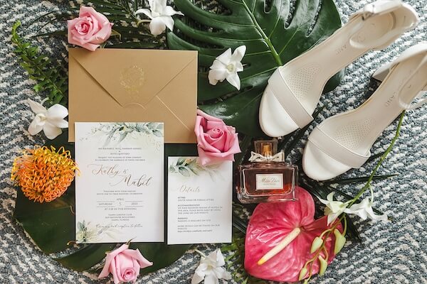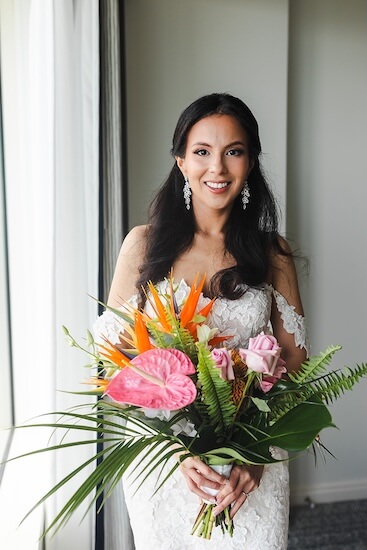 From the tropical-themed decor in salmon pink and shades of green to the food, entertainment, and personal touches, the day was fantastic.