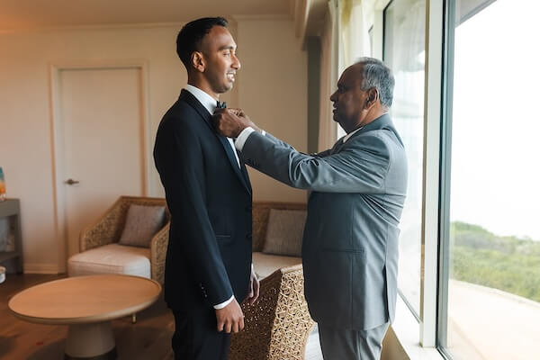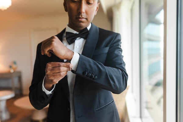 Across the hotel, Nabil gathered with the guys, hung out, and got dressed to see his bride-to-be for the first time.