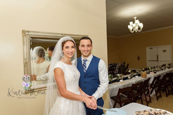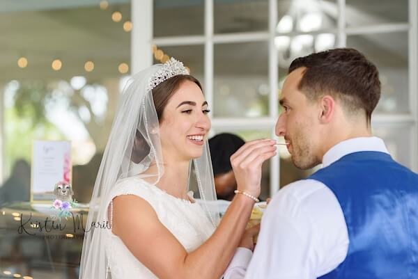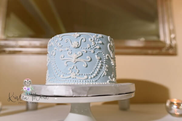 Another beautiful touch was the couple’s intimate wedding cake, which they chose in a beautiful Wedgewood pattern. This delicious treat would be presented with many other amazing treats later in the reception.