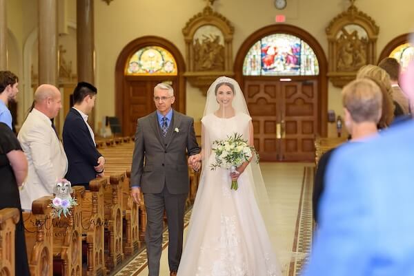 The Tampa church where the couple were married continued the fairytale. The inside of the sanctuary is stunning. We love the architecture and iconography. It was the ideal backdrop for their wedding ceremony.