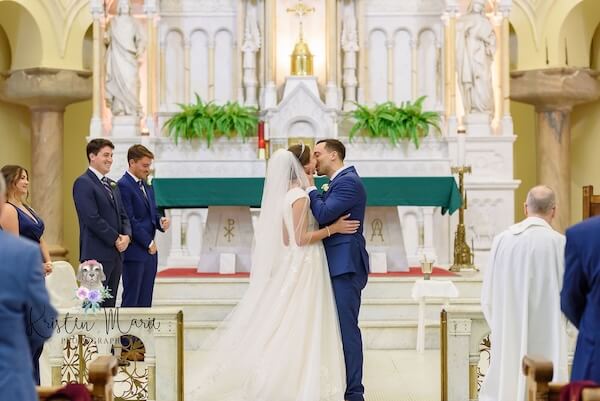 Surrounded by family and friends, Leah and Charles exchanged rings and vows in a beautiful ceremony, sealing their vows with a kiss.
