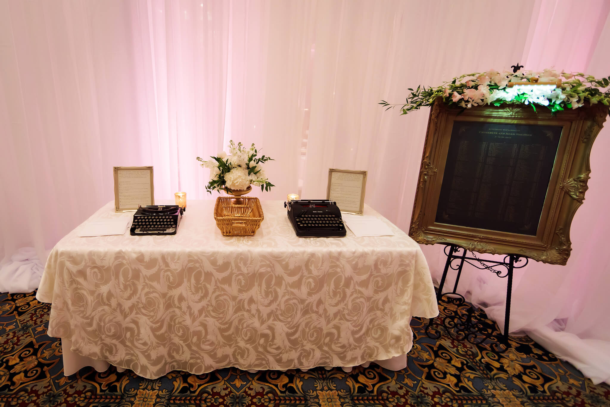 Mr. and Mrs. Epstein came to us thru a referral from the person who handled addressing their Save the dates and they were explaining all of the trouble and setbacks they were having with their wedding planning, location, etc. Thank Goodness that Diane Berube of Tampa Calligraphy knew to send them our way. Since it was the middle of January when we came on board and the wedding was in June. They secured us for Full Service and worked with Mr. and Mrs. Epstein along with Catherine and Adam to help secure vendors, style and design the event along with assisting with the Bridal Shower, Brunch and many details to bring their total vision to life that they wanted to incorporate for their vintage and historic Jewish Wedding Celebration.