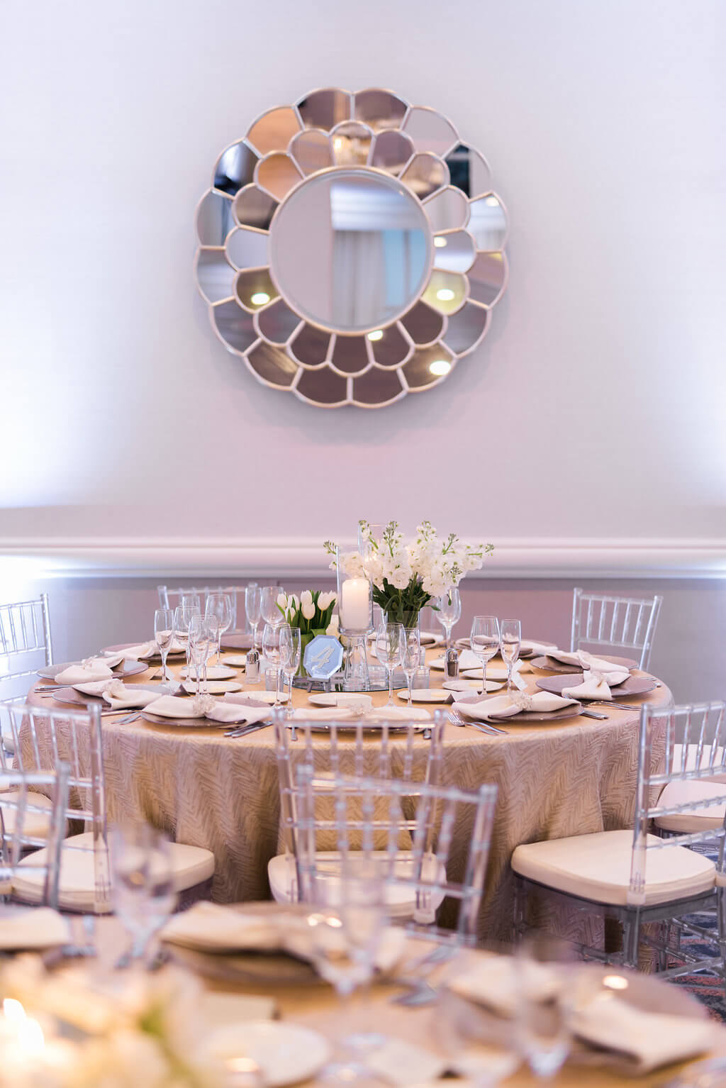 Christina and Kiel came to us thru a referral from Lindsey at the Hyatt where they were hosting their wedding. Christina wanted a wedding that was modern with hints of Gold, Silver & white and it seemed like no one understood Cristina’s vision and she was not sure how to communicate it until Special Moments stepped in. We originally met Christina. Kiel, Mom and Dad at the Marry Me Tampa Bay Venue Crawl and at the time they had a planner secured and were not to the stage when we met up 2 months later. With only a photographer and band secured we jumped right in and helped them bring Christina’s vision to life and recommended the wedding professionals who were able to see it to reality. Mom was the main point of communication due to Christina’s crazy work schedule , with the Ballroom newly renovated at the Hyatt , we ran into a few challenges with sizes and new room configurations ,but in the end , when you hire the best wedding professional team all things are possible.