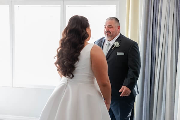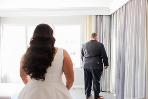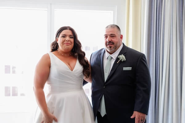 Dressed and ready, it was time for Mary’s dad to see her for the first time. It was a beautiful moment, and before heading to the Sky Terrace, the bride took a little time for a portrait session with mom and dad.