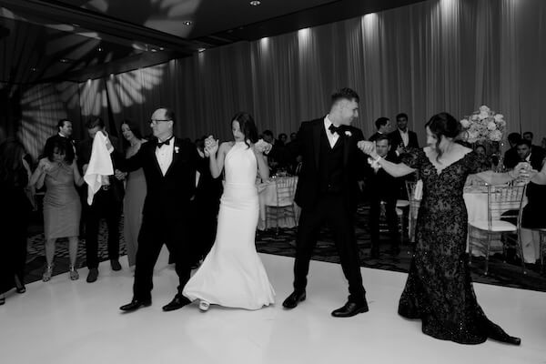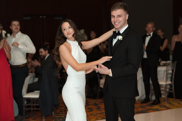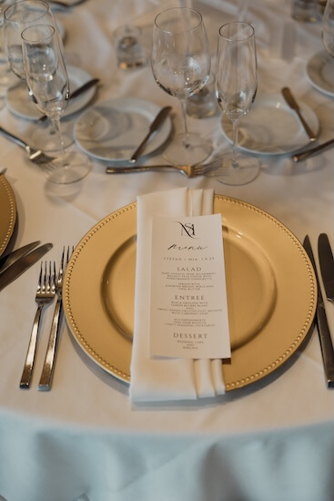 The evening continued with parent dances, a delicious multicourse dinner, and several memorable toasts before Mia and Stefan cut their wedding cake.