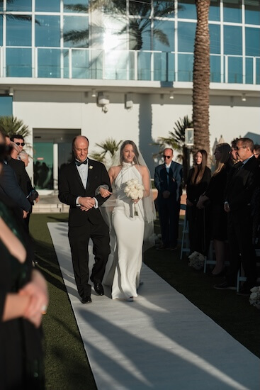 With everyone in place, Stefan looked on as Mia, escorted by her father, made her entrance to “Young and Beautiful,” by Lana del Ray.