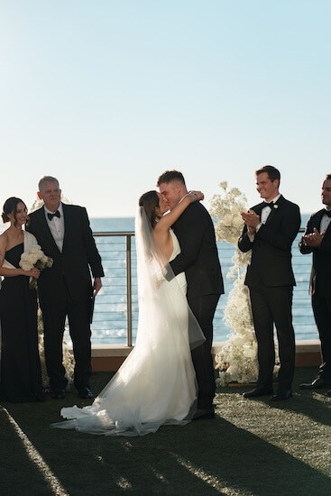 Surrounded by family and friends, Mia and Stefan exchanged wedding vows and rings, sealing their bond with a kiss before making their exit to “Love Story.”