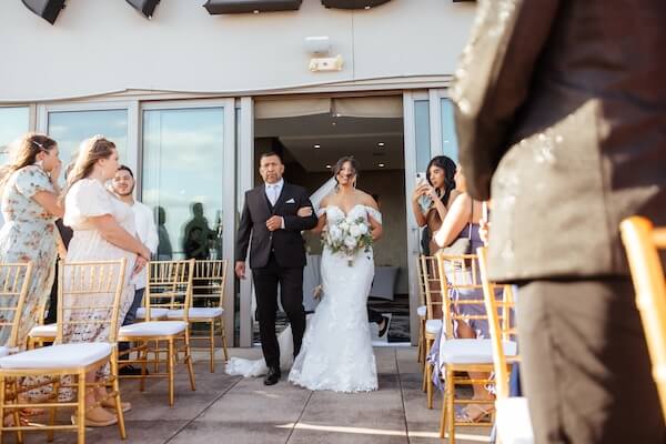 Gold and white wedding ceremony on the rooftop of the Westin Tampa Bay.