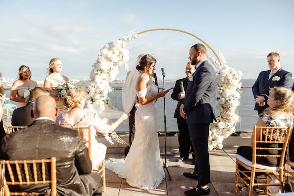 Micheel and Zach’s Tampa Bay wedding, which featured gold, white, and touches of blush, was magical. The Westin Tampa Bay provided ideal spaces for their ceremony and reception, and the natural surroundings made for beautiful photos.