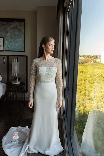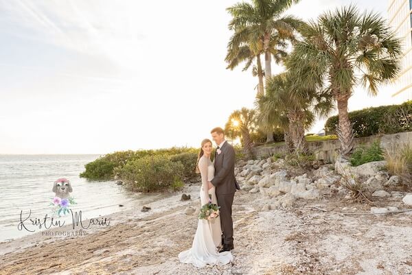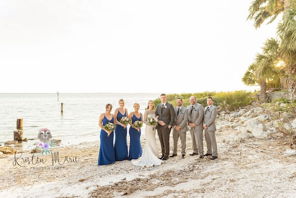 Meanwhile, the newlyweds and their wedding party took some time for group photos before the couple’s portrait session just before the sun began to set over Tampa Bay.