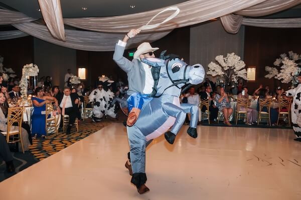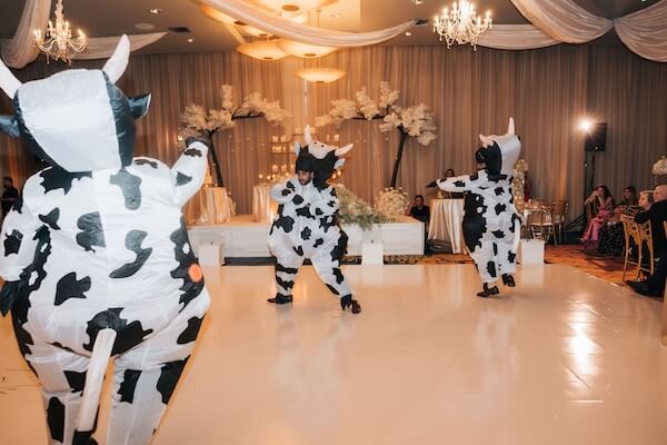 However, in this case, the wedding party entrance is EVERYTHING! The costumes and the fun moments they created added significantly to the story of the newlyweds and their friends’ love for them.
